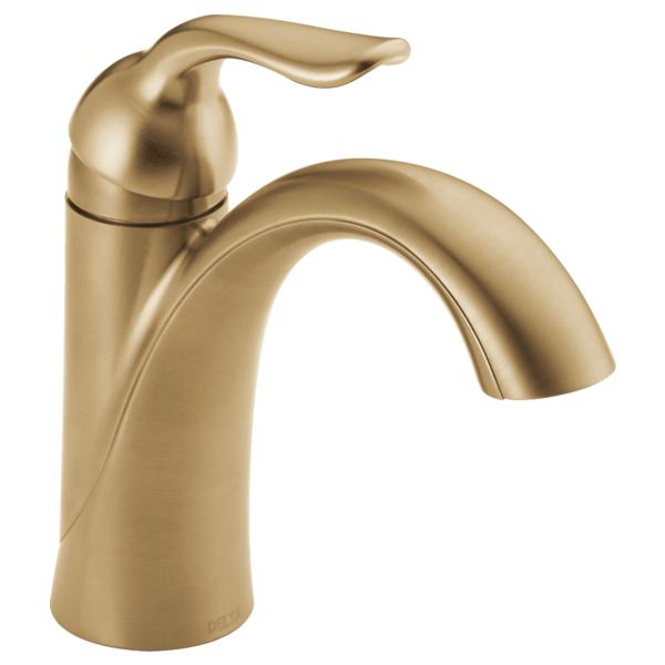 DELTA® Centerset Lavatory Faucet, Lahara® Collection, 1.2 gpm Flow Rate, Standard Spout, 5-1/2 in Spout Reach, 3-15/16 in Spout Height, Lever Handle, 1 Handles, Pop-Up Drain, 1/3 Faucet Holes, 3/8 in Connection, Compression Connection, Function: Traditional, 2-1/8 in Maximum Deck Thickness, Deck Mounting, DIAMOND™ Seal Valve, 8-29/32 in H Dimensions, Brass, Champagne Bronze, Commercial Commercial/Residential