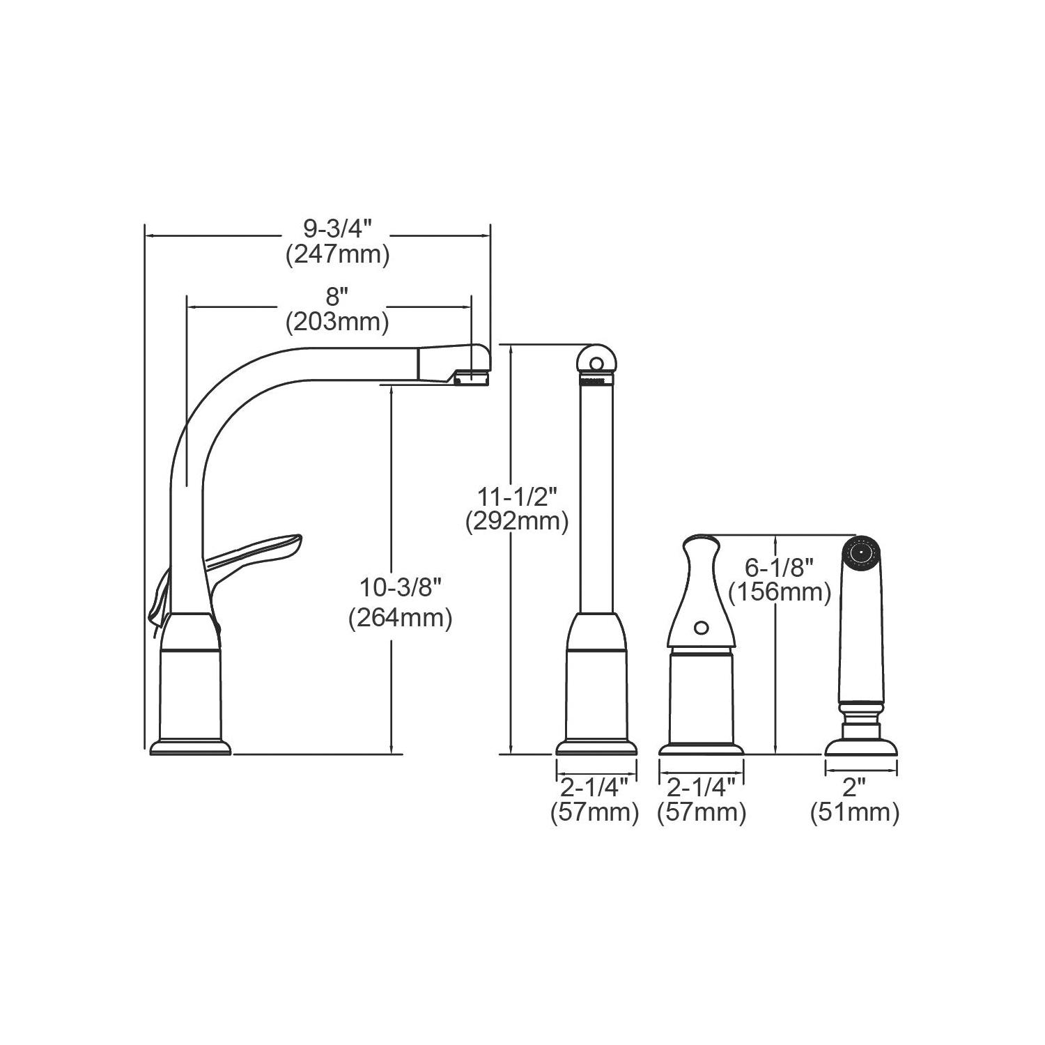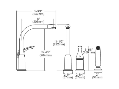 Elkay® Kitchen Faucet, Everyday, 1.5 gpm, Swivel Spout, 8 in Spout Reach, 11-1/2 in Spout Height, Remote Lever Handle, 1 Handle, Side Spray(Y/N): Yes, 3 Faucet Holes, 3/8 in, Compression Hose, Deck Mount, Ceramic Disc Valve/Cartridge, Brass, Polished Chrome, Import