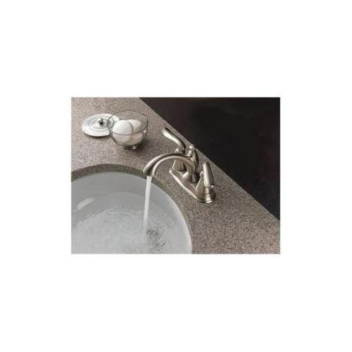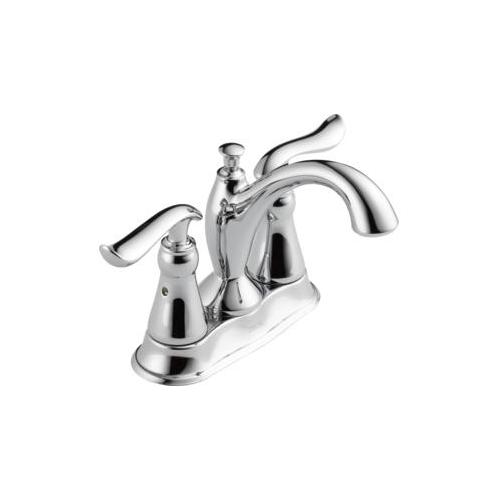 DELTA® Centerset Lavatory Faucet, Linden™ Collection, 1.2 gpm Flow Rate, 4 in Center Distance, Rigid Spout, 4-7/8 in Spout Reach, 4-1/2 in Spout Height, Lever Handle, 2 Handles, Metal Pop-Up Drain, 3 Faucet Holes, 3/8 in Connection, Compression Connection, 2-1/4 in Maximum Deck Thickness, Deck Mounting, DIAMOND™ Seal Valve, 9-5/8 in W x 5-3/4 in H Dimensions, Brass, Polished Chrome, Commercial Commercial/Residential