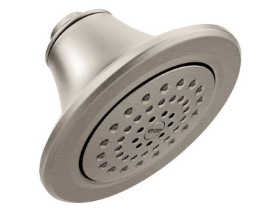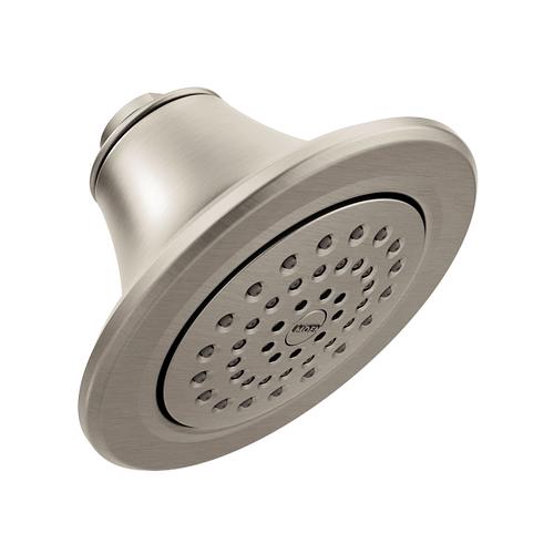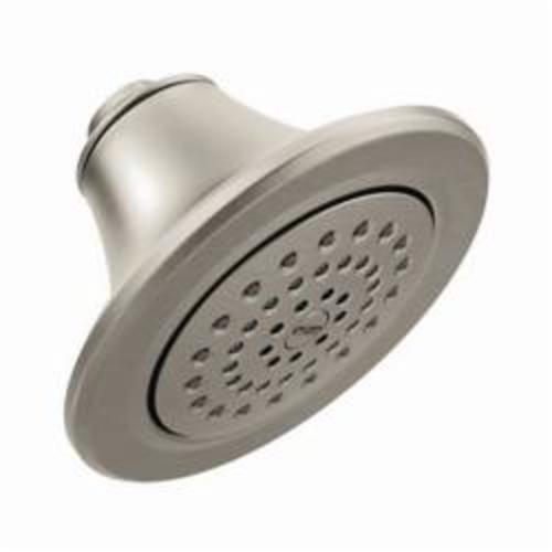 Moen®, S6312BN, Shower Head, Standard, Icon™ Collection, 2.5 gpm Minimum, 1/2 in IPS Connection, Round Shape, 1 Sprays, Spray Pattern: Full Body, Wall Mounting, 80 psi Pressure, 5-7/8 in Head, 6 in Arm Length, 5.69 in Overall Width, 5.88 in Overall Height, Metal, Brushed Nickel, Domestic