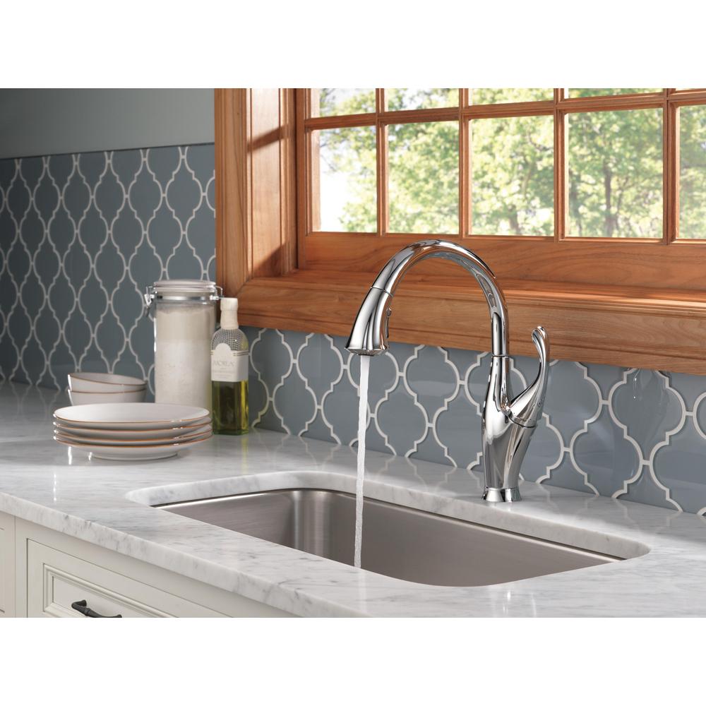 DELTA® 9192-DST Addison™ Kitchen Faucet, 1.5 gpm Flow Rate, Polished Chrome, 1 Handles, 1 Faucet Holes, Function: Traditional, Domestic, Commercial