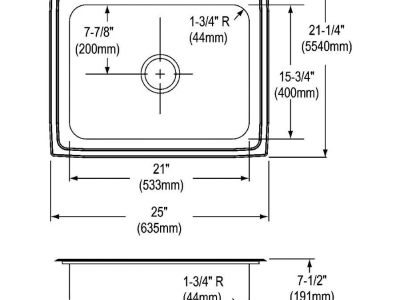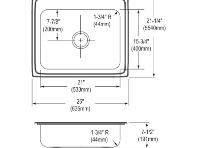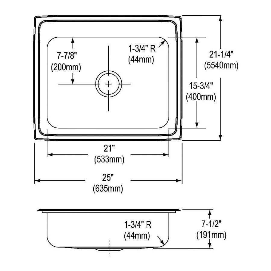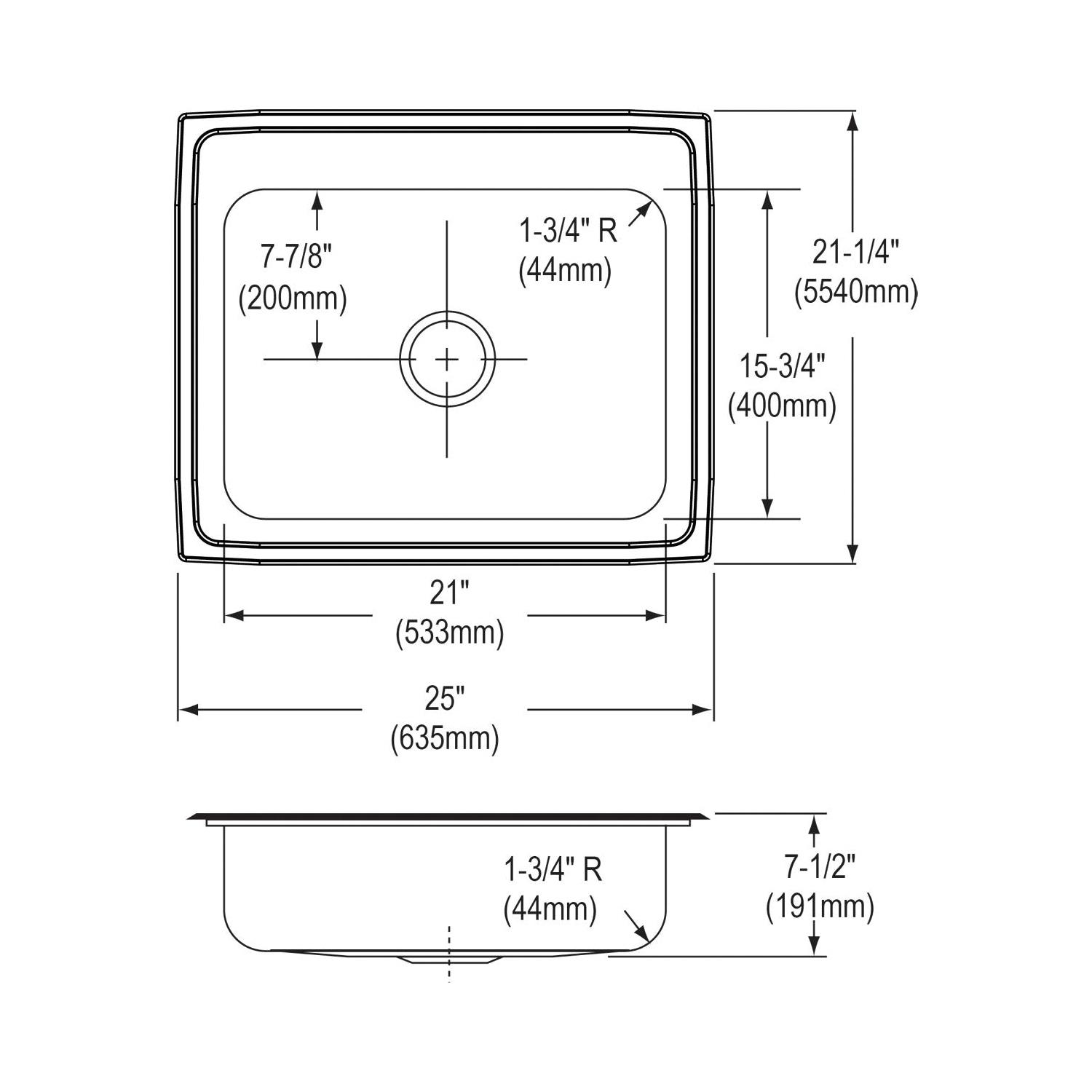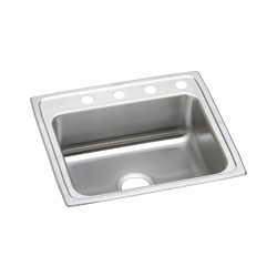 Elkay®, PSR25213, Kitchen Sink, Celebrity® Collection, Rectangle Shape, 21 in Bowl Length, 15-3/4 in Bowl Width, 7-3/8 in Bowl Depth, 3-1/2 in Drain Opening, 3 Faucet Holes, 4 in Faucet Hole Spacing, 1 Bowls, 25 in L x 21-1/4 in W x 7-1/2 in H Overall, Drop-In Mounting, Stainless Steel, Brilliant Satin, Domestic