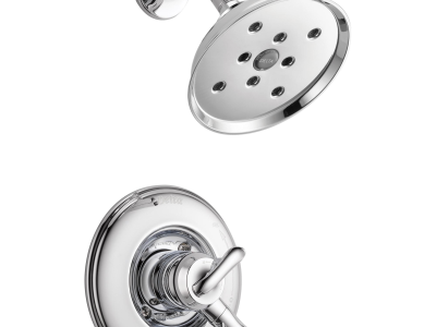 DELTA® Shower Trim, Series: Monitor® 17, Linden™ Collection, 1.75 gpm Shower Flow Rate, 2 Handles, Lever Handle, 6-3/8 in Dia Trim, 1222 Pressure Balanced, Hand Shower: No, Spray Pattern: H2Okinetic®, 80 psi Pressure, Wall Mounting, For Use With: MultiChoice™ R10000 Series Universal Rough-In Valve Body, Solid Brass, Polished Chrome, Domestic, Commercial Commercial/Residential
