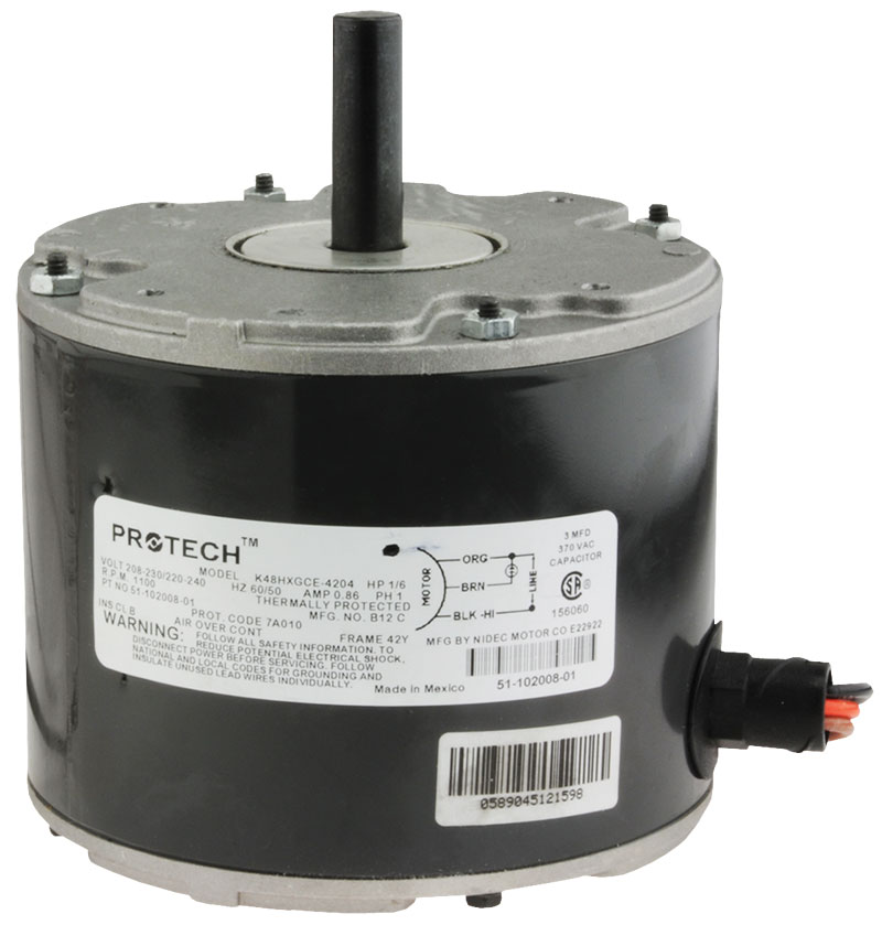 Ruud 51-102500-02 1/6 Horsepower 230 Volt Single Speed Direct Drive Condenser Motor