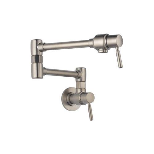 Brizo® Pot Filler Faucet, Euro, 4 gpm, Swivel Spout, 22 in Spout Reach, 6-1/2 in Spout Height, 2 Handles, Side Spray(Y/N): No, 1 Faucet Holes, 1 in Faucet Hole, 1/2 in Connection, IPS Connection, Wall Mounting, Ceramic, Brass, Stainless Steel, Import