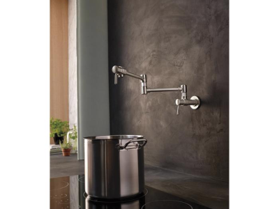 With twice the flow rate of standard kitchen faucets, Euro Pot Filler faucets by Brizo® make it easy to fill large cooking vessels quickly, without the walk from sink to stove.