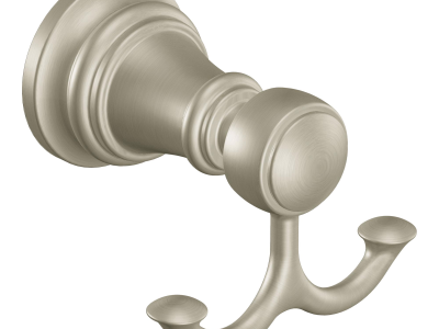 Moen® Robe Hook, Weymouth™, 2 Hooks, 3.12 in Overall Width, 3.1 in Overall Depth, 2.76 in Overall Height, Brushed Nickel, Import