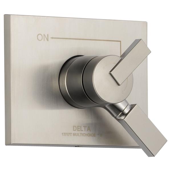 DELTA® Valve Trim, Series: Monitor® 17, Collection: Vero®, 2.5 gpm Shower Flow, Lever Handle, 7-3/32 in L x 5-19/32 in W Trim, Dual-Function Pressure Balanced Valve/Cartridge, 80 psi, For Use With: MultiChoice® R10000 Series Universal Rough-In Valve Body, Brass, Stainless Steel, Domestic
