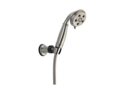 DELTA® 55433-SS Wall Mount Hand Shower, 3 in Dia 3-Function Shower Head, 1.75 gpm Flow Rate, 60 in L Hose, 1/2 in Connection, Stainless Steel, Import