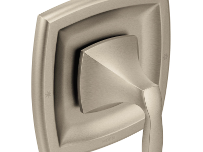 Crisp edges and uncomplicated style features give the Voss collection an ageless, yet fashion-forward, presence. Each silhouette brings a confident transitional style to the bath. This brushed nickel Posi-Temp valve trim was built to last by MOEN. Designed for use in your bath. This trim kit requires MOEN valve 2510, 2520, 2570, 2580, or 2590 to complete installation.