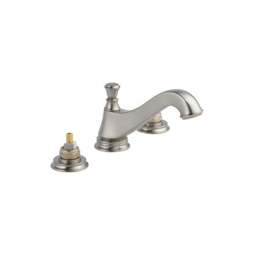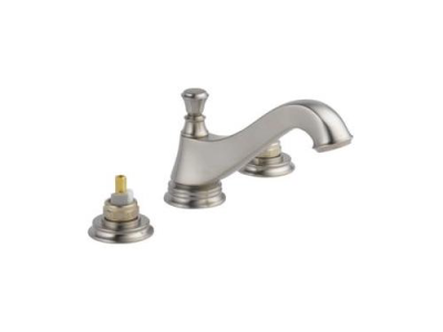 DELTA® Widespread Lavatory Faucet, Cassidy™, 1.5 gpm, 6 to 16 in Center Distance, Low-Arc Spout, 5-17/32 in Spout Reach, 2-3/4 in Spout Height, Pop-Up Drain, 3 Faucet Holes, 1/2-14, NPSM, 1-3/32 in Maximum Deck Thickness, Deck Mount, Washerless Stem Valve/Cartridge, 4-1/32 in H, Solid Brass, Stainless Steel, Import, Commercial