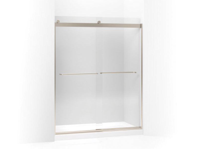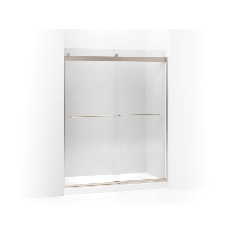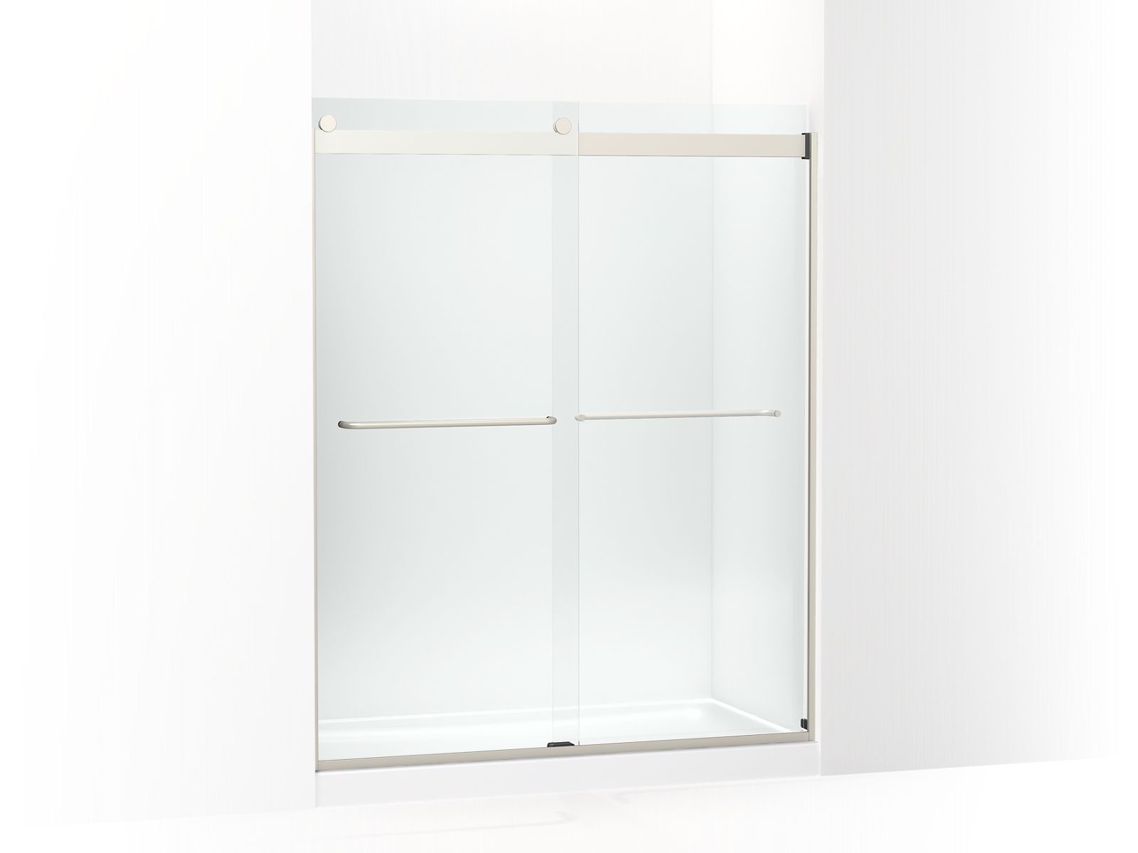 Kohler® Sliding Shower Door, Levity®, 56-5/8 to 59-5/8 in Opening Width, 66-7/8 in Opening Height, Frameless, Clear Tempered Glass, 1/4 in Glass Thickness, 74 in Overall Height, 59-5/8 in Overall Width, 24-9/16 to 27-9/16 in Walk Through, Anodized Aluminum, Anodized Brushed Bronze