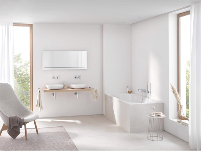 Purism at its best the striking geometry of the new GROHE Euphoria Cube and Sena Cube shower designs combine pure squares with elongated flat surfaces to create balanced minimalist style that blends perfectly with the new Eurocube faucet line. Add to these GROHE's new Essentials Cube bath accessories line and you can have a complete, perfected Cosmopolitan bathroom. The hand shower with its elongated rectangular cube styling and the shower heads with their square, flat designs are the heart of GROHE's "cube" shower offering. Additionally, Euphoria Cube offers a matching wall union, hand shower holder, and hand shower bar.