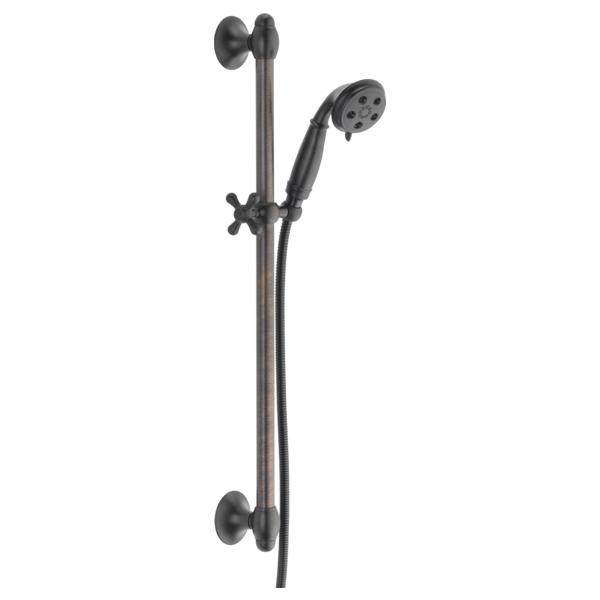 DELTA® 51308-RB Hand Shower, 3 in Dia 3 Shower Head, 2 gpm Flow Rate, 60 to 82 in L Hose, 1/2 in Connection, Venetian Bronze, Import