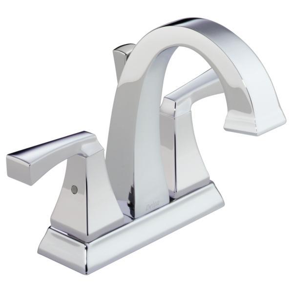 DELTA® Centerset Lavatory Faucet, Dryden™ Collection, 1.2 gpm Flow Rate, 4 in Center Distance, Rigid Spout, 4-11/16 in Spout Reach, 4-1/8 in Spout Height, Lever Handle, 2 Handles, Metal Pop-Up Drain, 3 Faucet Holes, 3/8 in Connection, Compression Connection, 2-1/4 in Maximum Deck Thickness, Deck Mounting, DIAMOND™ Seal Valve, 9-1/2 in W x 6-5/8 in H Dimensions, Brass, Polished Chrome, Commercial Commercial/Residential