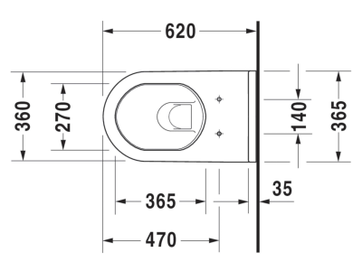 DURAVIT Toilet, Series: 222609, Starck 3 Collection, 0.8/1.6 gpf Flush, Wall Mounting, 10-5/8 in L x 14-3/8 in W Bowl, 14-3/8 in L x 24-1/2 in W x 15 in H Overall, White, Import