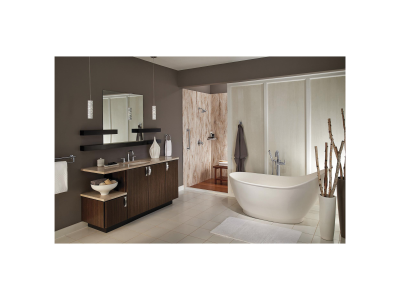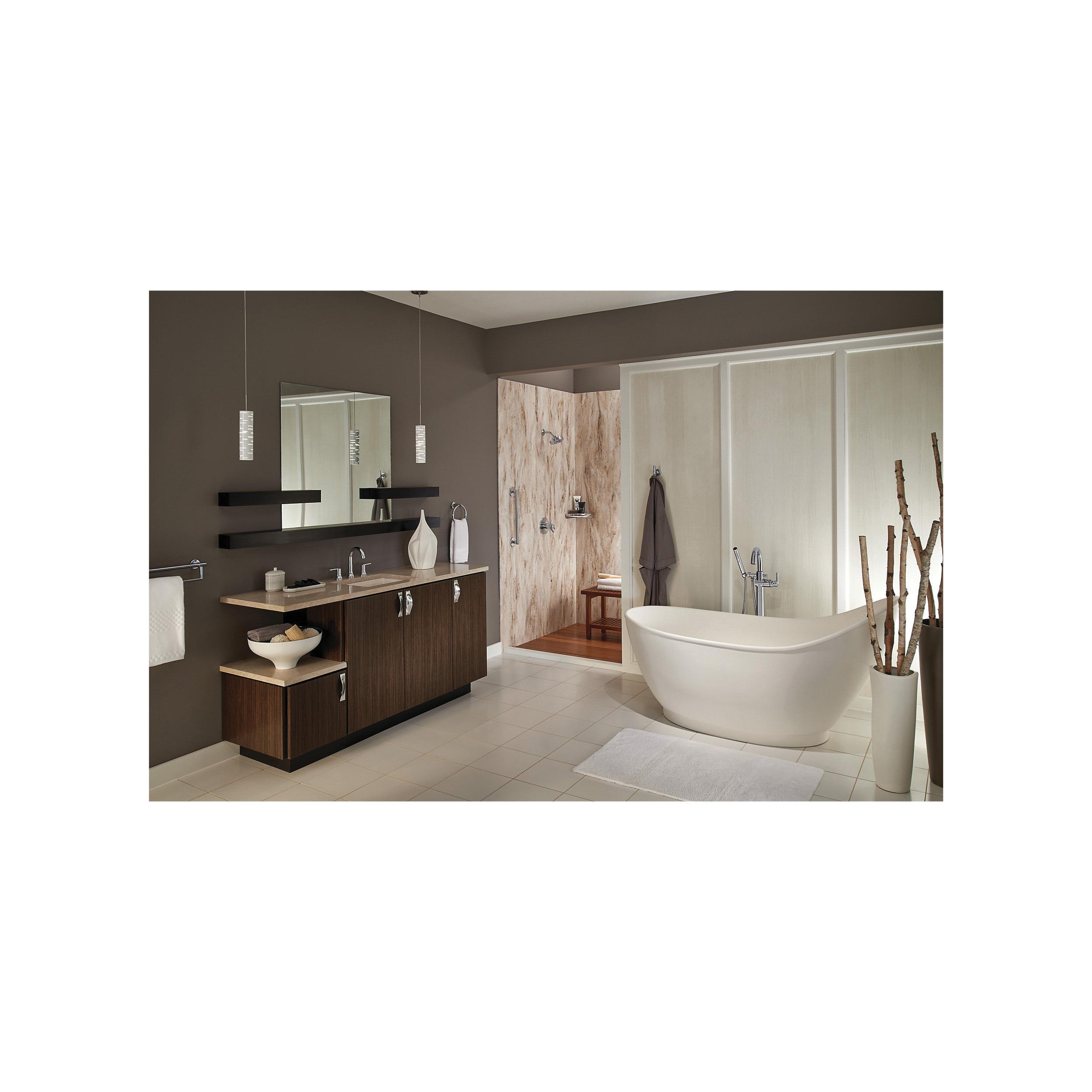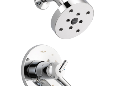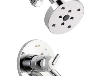 Delta® H2Okinetic® Showers look different because they are different. Using advanced technology, H2Okinetic showers sculpt water into a unique wave pattern, giving you 3X the coverage of a standard shower head.* The end result is a shower that provides more coverage, more warmth and more intensity for a truly drenching shower experience. With separate handles for volume and temperature control, this Delta tub/shower provides a more refined showering experience. Simply set the water at your preferred temperature and turn the shower on or off with the volume control handle - without interrupting your set temperature. Delta® pressure-balance valves use Monitor® Technology to protect you and your family from sudden temperature changes. Chrome has rapidly become one of the most popular finishes across décor styles in the bath thanks to its stunning gloss and innate versatility. Paired with crisp lines and bright whites, it creates a bold, modern contrast, but it works equally well with vintage styles and traditional spaces to convey a hint of nostalgia. Delta WaterSense labeled faucets, showers and toilets use at least 20% less water than the industry standard—saving you money without compromising performance.