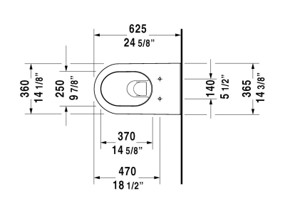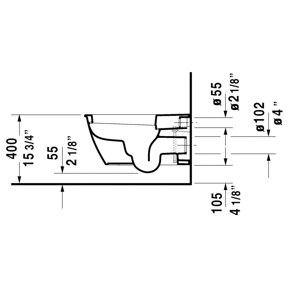 DURAVIT Toilet, Series: 254409, Darling New Collection, 1.6/0.8 gpf Flush, Elongated Bowl, 15-3/4 in Rim Height, Wall Mounting, Dual Flush Washdown Flushing System, 15-3/4 in H Bowl, 24-5/8 in W x 14-3/8 in D x 13-5/8 in H Overall, Ceramic, White, Import