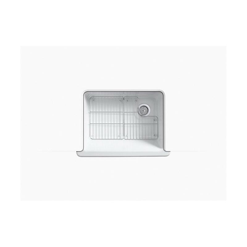 Kohler® 6486-FF Whitehaven® Self-Trimming Kitchen Sink With Short Apron, Squared Shape, 21-9/16 in W x 9-5/8 in H, Reinforced Base Mount, Enameled Cast Iron, Sea Salt™