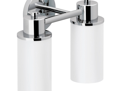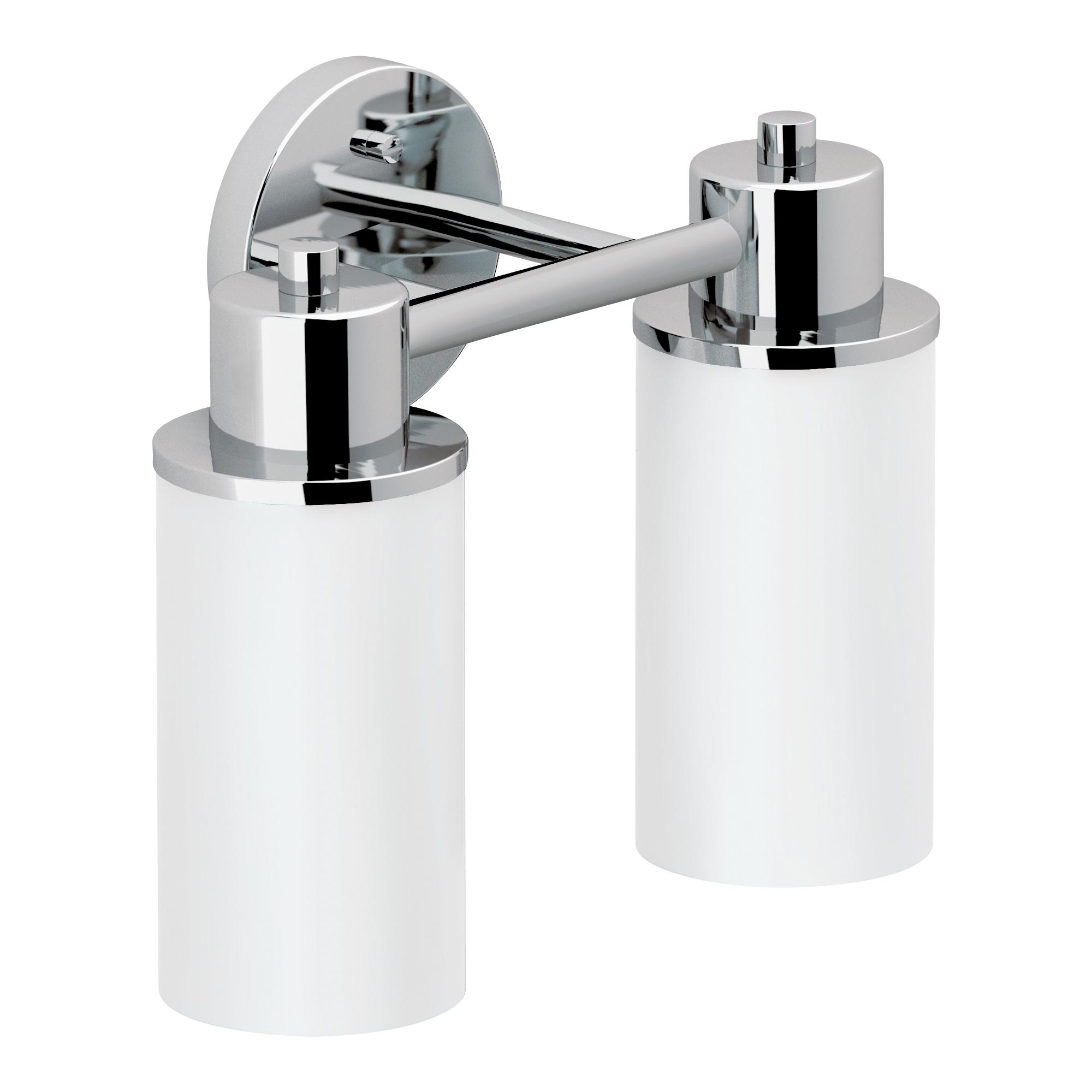 Moen® 2-Globe Bath Light, Iso™, 120 VAC, Medium Lamp Base Type, 100 W Lamp, Glass/Zinc Housing, Polished Chrome Housing, 12.95 in W x 5.97 in D x 11.02 in H, Import