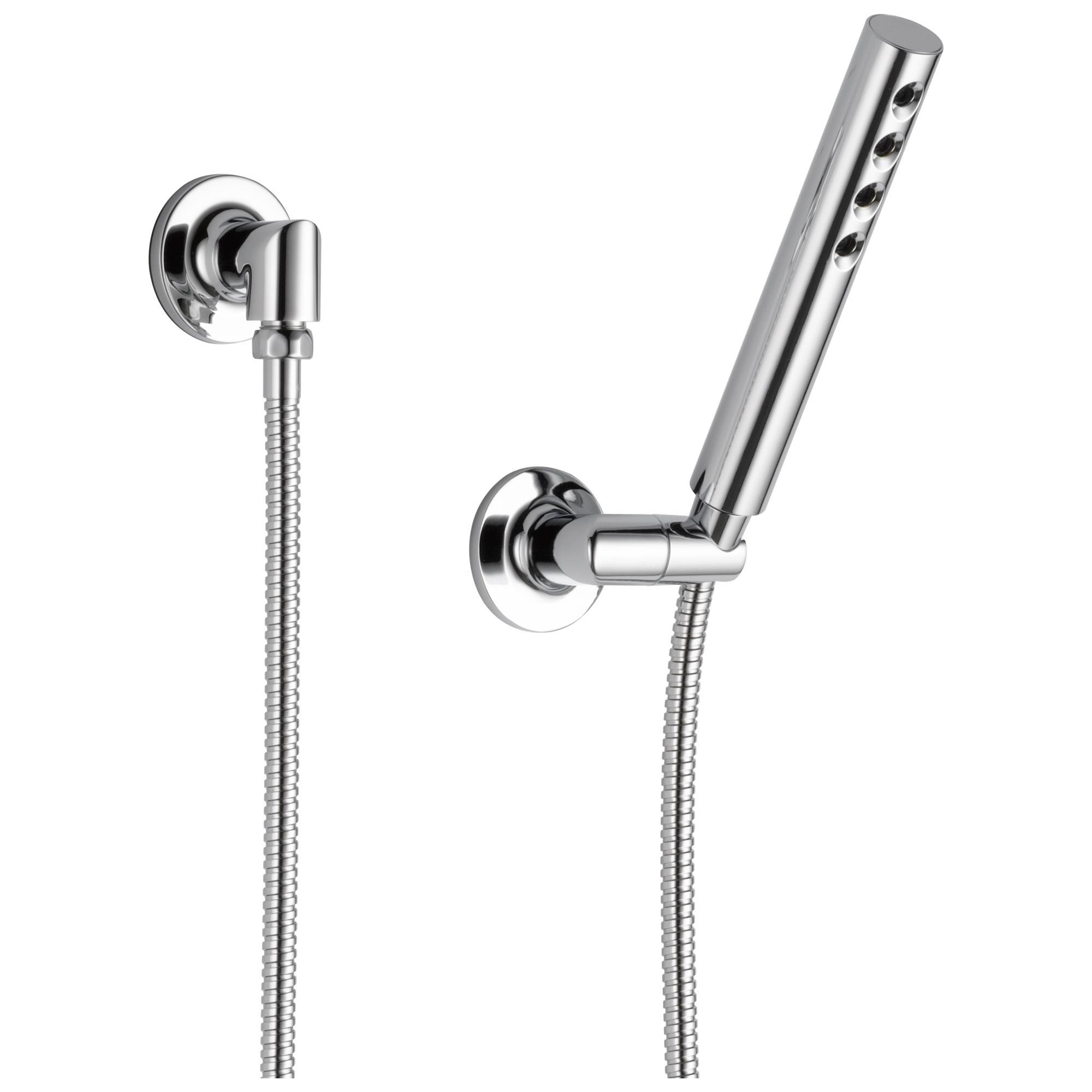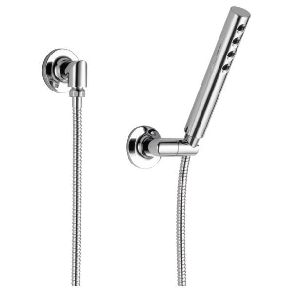 Brizo® Wall Mount Hand Shower, Odin™, Shower Head Patterns: 1-Function, 2 gpm, 60 to 82 in Hose Length, Full Body Spray, 80 psi, 1/2-14 NPSM, Metal Hose, Plastic, Polished Chrome, 3-7/8 in D x 9 in H, Import