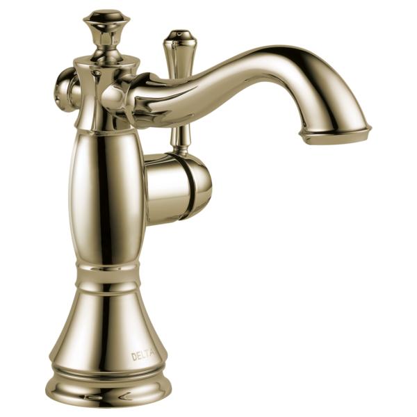 DELTA® 597LF-PNMPU Cassidy™ Centerset Lavatory Faucet, Commercial, 1.2 gpm Flow Rate, 5-7/32 in H Spout, 1 Handles, Pop-Up Drain, 1/3 Faucet Holes, Polished Nickel, Function: Traditional
