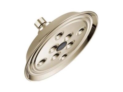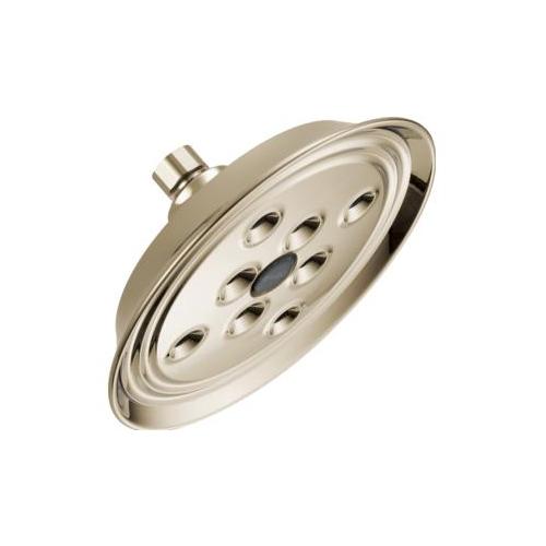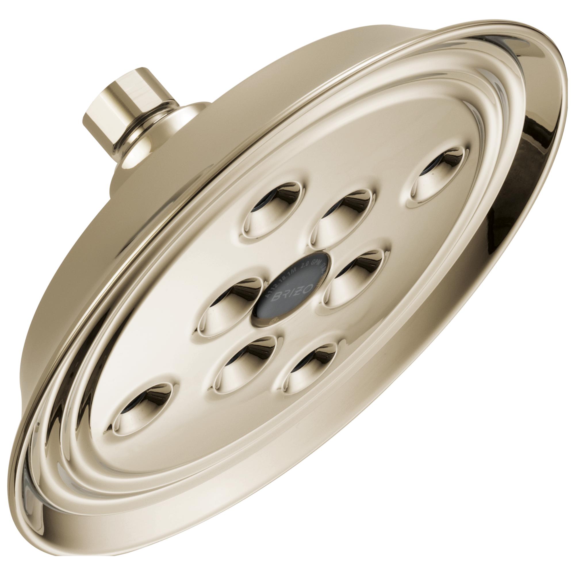 Brizo® Raincan Shower Head, Baliza®, 2 gpm, 1/2 in, Round, Number of Sprays: 1, Spray Pattern: Full Body, Wall Mount, 80 psi, 7 in Arm Length, 7-11/16 in Overall Width, 2-9/16 in Overall Height, Plastic, Polished Nickel, Import