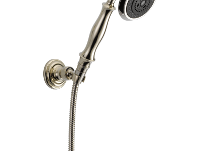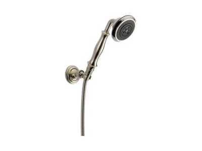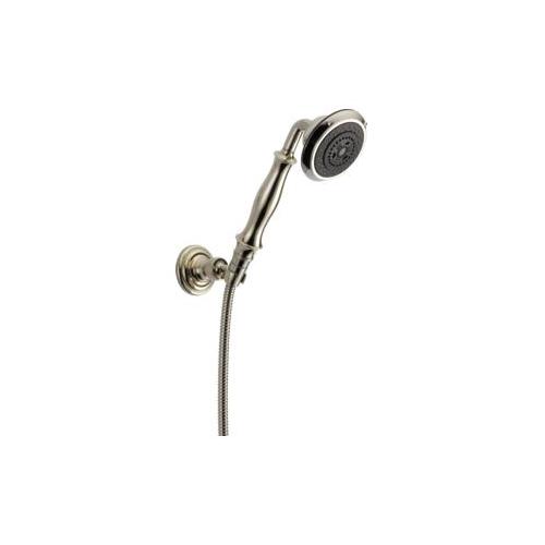 Brizo® Hand Shower, Tranditional, Baliza® Collection, Shower Head Patterns: 3-Function, 2 gpm, 60 to 82 in Hose Length, Full Body/Massage/Aerated Spray, 80 psi, 1/2-14 NPSM Connection, Metal Hose, Plastic, Polished Nickel Finish/Color, 3-1/4 in D x 9-7/8 in H