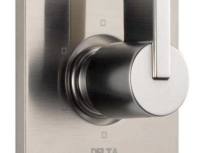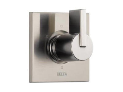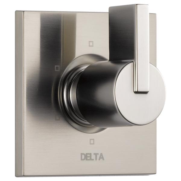 DELTA® Diverter Trim, 3-Port 6-Setting, Vero®, Metal Lever Handle, 4-1/2 in H x 4-1/2 in W Trim, Hand Shower: No, For Use With: R11000 Series Ceramic Cartridge Rough-In Valve, Brass, Brilliance® Stainless Steel