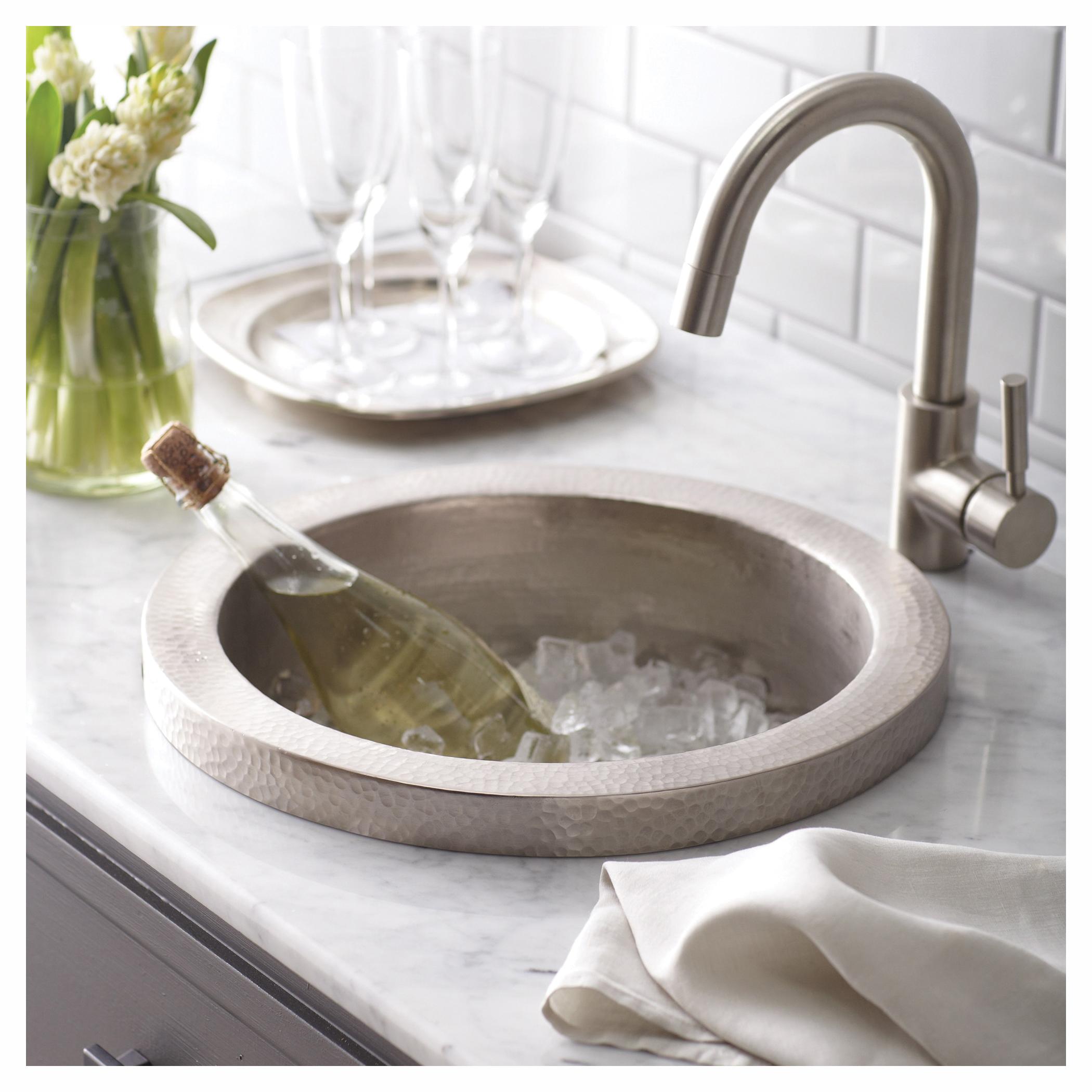 Native Trails CPS516 Mojito Bar and Prep Sink, Brushed Nickel, Round Shape, 13 in L x 7 in D Bowl, 16 in OD x 7-1/2 in H, Drop-In/Top Mounting, Copper