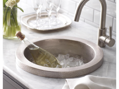 With a look as refreshing as its namesake, the Mojito enhances any bar or prep area. This raised-profile drop-in Sink illustrates innovative craftsmanship and design with a festive, artistic flavor. Its deep, circular shape makes a beautiful entertainment piece when filled with bottled beverages on ice. Hand-hammered and forged of high-quality recycled copper, each piece yields beautiful, one-of-a-kind subtleties.