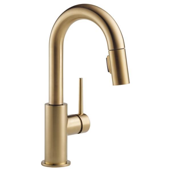 DELTA® 9959-CZ-DST Trinsic® Pull-Down Pulldown Bar/Prep Faucet, 1.8 gpm Flow Rate, Brilliance® Champagne Bronze, 1 Handles, 1 Faucet Holes