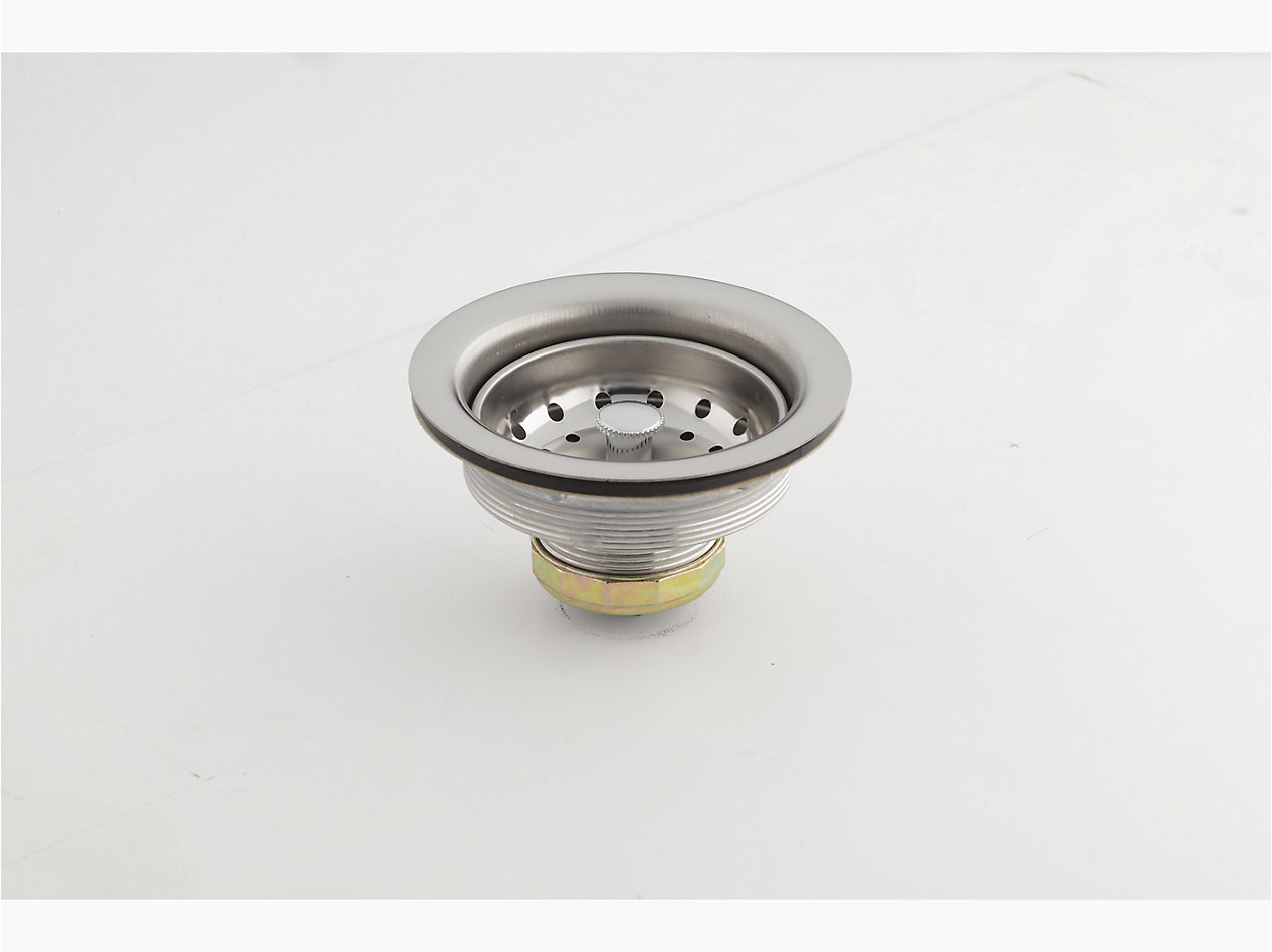 This STERLING stainless steel sink strainer includes a basket and fits a 3-1/2" to 4" drain hole.