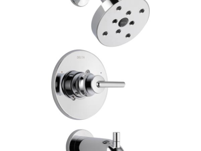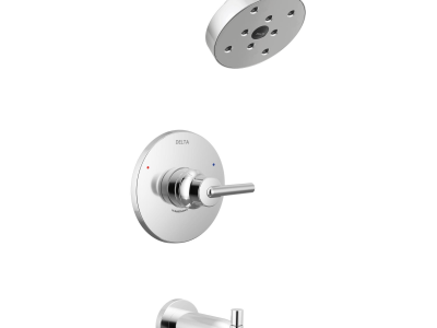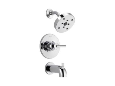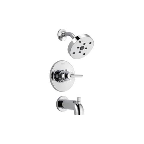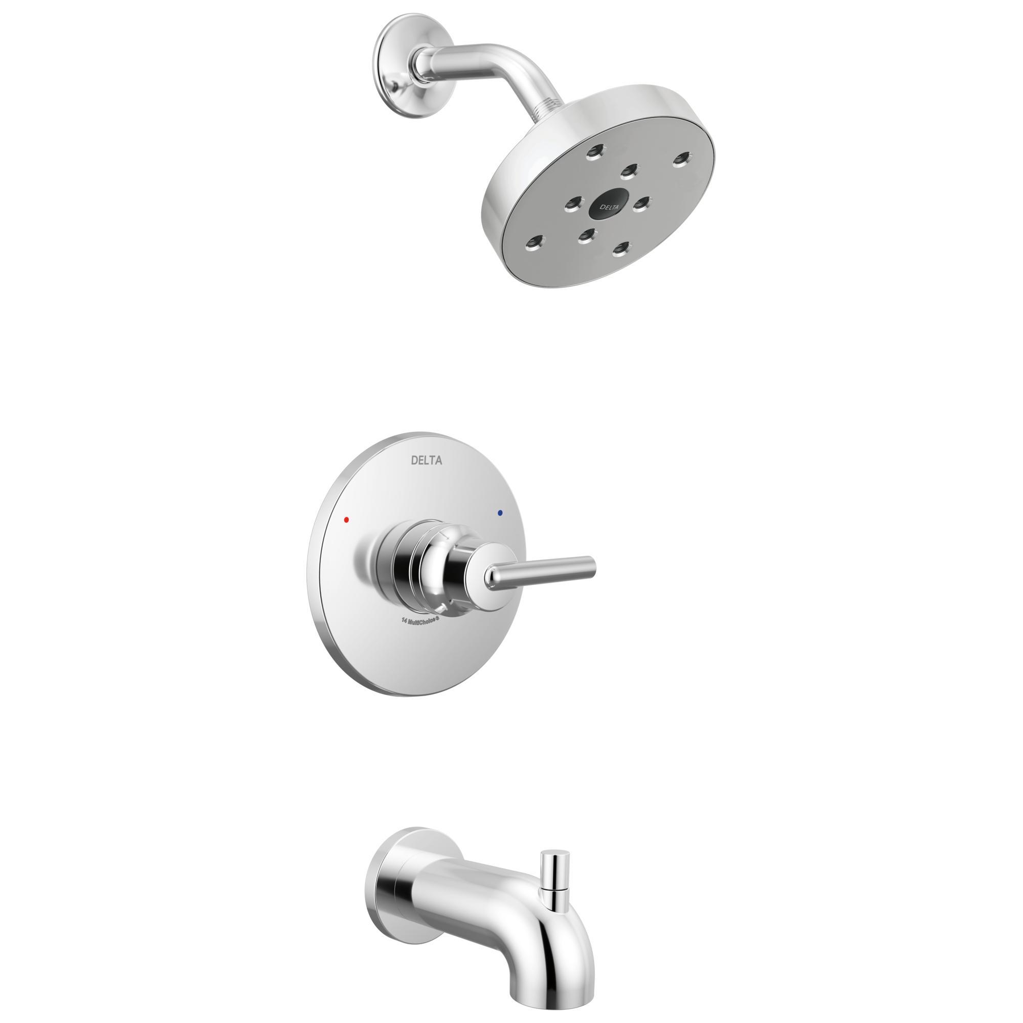 DELTA® Tub and Shower Faucet Trim, Series: Monitor® 14, Trinsic® Collection, 1.75 gpm Shower Flow Rate, Pull-Up Diverter Spout, 6-3/16 in Spout Reach, 1 Handles, Metal Lever Handle, 6-1/2 in Dia Trim, 1222 Pressure Balanced, Hand Shower: No, Spray Pattern: H2Okinetic®, 1 Spray Functions, Wall Mounting, For Use With: For use with MultiChoice® Universal Rough-In Valve Body(R10000 Series), Brass, Polished Chrome