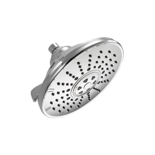 DELTA® Raincan Shower Head, Universal, 2.5 gpm Flow Rate, 1/2 in Connection, Round Shape, 3 Sprays, Spray Pattern: Full Body/Full Body with Massage/Massage, 80 psi Pressure, 8-5/32 x 4-11/16 in Head, 4-11/16 in Overall Length, 8-5/32 in Overall Width, 8-5/32 in Overall Height, Brass, Polished Chrome, Import