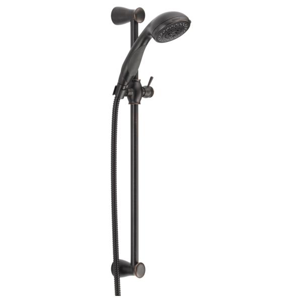 DELTA® Hand Shower, Premium, Collection: Lahara®, Shower Head Patterns: 3, 2.5 gpm, 70 in Hose Length, Full Body/Massage/Drench Spray, 80 psi, 1/2-14 Male NPSM Connection, UltraFlex® Hose, ABS, Venetian Bronze, With Slide Bar Yes/No: Yes, Import