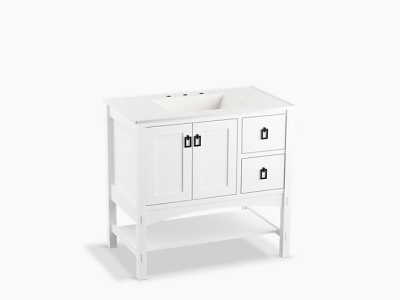 Kohler K-99556-R-1WA Marabou(R) 36" Bathroom Vanity Cabinet with 2 Doors and 2 drawers on Right - Linen White