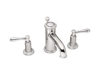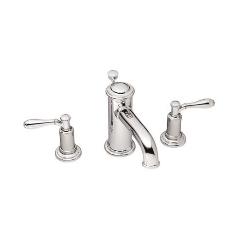 Newport Brass® Widespread Lavatory Faucet, Series: Model 2550, Ithaca, 1.2 gpm, 8 to 20 in Center Distance, Fixed Spout, 6-1/8 in Spout Reach, 3-5/16 in Spout Height, Traditional Lever, 2 Handles, Pop-Up Drain, 3 Faucet Holes, 1/2 in, NPSM, 1-3/4 in Maximum Deck Thickness, Deck Mount, 1/4 Turn Washerless Ceramic Disc Valve/Cartridge, 8-7/16 in L x 6-5/16 in H, Solid Brass, Polished Chrome