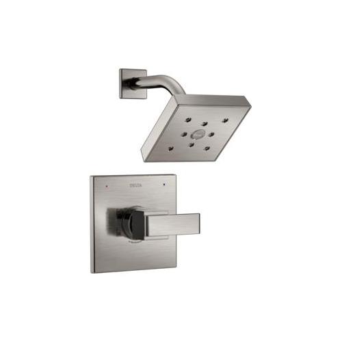 DELTA® Shower Trim, Series: Monitor® 14, Ara® Collection, 1.75 gpm Shower Flow Rate, 1 Handles, 6-1/2 in H Trim, 1222 Pressure Balanced, Hand Shower: No, Spray Pattern: H2Okinetic®, 1 Spray Functions, Wall Mounting, For Use With: For use with MultiChoice® Universal Rough-In Valve Body(R10000 Series), Brass, Stainless Steel, Commercial Commercial/Residential