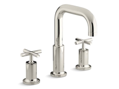 KOHLER® Purist bathroom faucets and accessories combine simple, architectural forms with sensual design lines. Featuring this modern, minimalist style, this Purist deck-mount bath faucet trim includes a spout and ergonomic cross handles that add sophistication to your bath. The two handles allow you to control hot and cold water separately, making it easy to find your desired temperature. Pair this trim with high-flow ceramic disc valves or 1/2-inch ceramic disc valves for optimal performance.
