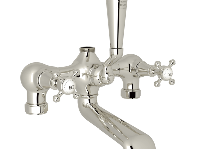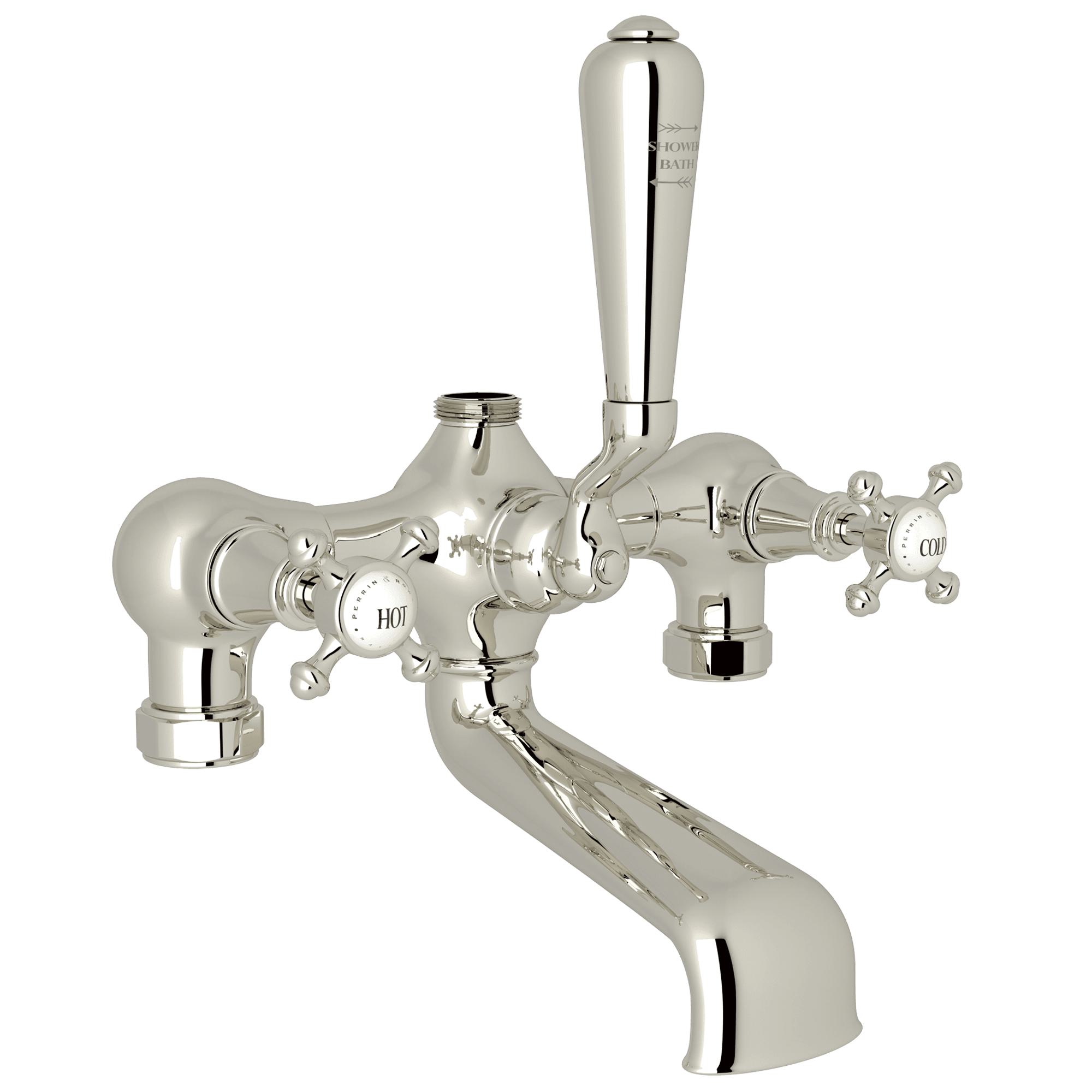 Perrin & Rowe, U.3019X-PN, Tub Filler, Bathtub, Georgian Era Collection, 19 gpm Flow Rate, 8 in Center Distance, Fixed Spout, 6 in Spout Reach, 3 in Spout Height, Cross Handle, 3 Handles, 2 Faucet Holes, 3/4 in Connection, Straight Female Connection, Hand Shower: No, Ceramic Disc, 7 in Dimensions, Brass, Polished Nickel, Import