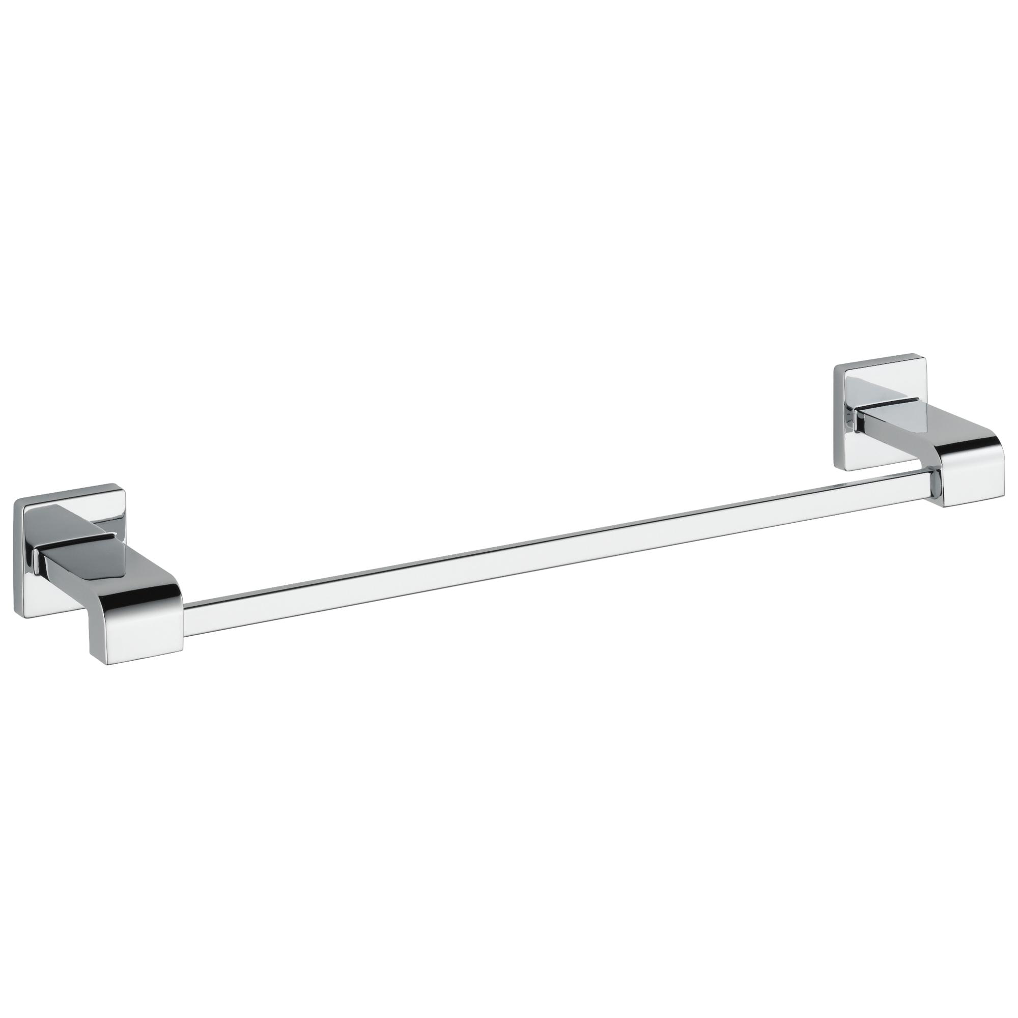 DELTA® Towel Bar, Arzo® Collection, 18 in Bar Length, 20-1/8 in Overall Length, 3-1/2 in Overall Depth, 2-1/8 in Overall Height, 20 lb Load, 2-1/8 in Base, Brass, Polished Chrome, Import