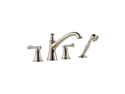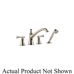 Brizo® Roman Tub Trim, Series: T67405, Baliza®, 18.5 gpm, 10 to 16 in Center Distance, Slip-On Spout, 8-15/16 in Spout Reach, 5-7/8 in Spout Height, 60 to 82 in Hose, 2 Handles, 4 Faucet Holes, Spray Pattern: Full Body, Function: Traditional, 1 Spray Functions, Hand Shower: Yes, 2-1/2 in Maximum Deck Thickness, Deck Mounting, 7-25/64 in H, Brass, Polished Nickel