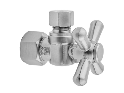 Jaclo® 615-PCH 1/4 Turn Angle Pattern Contemporary/Modern Supply Ball Valve With Standard Cross Handle, 3/8 in Nominal, IPS x OD End Style, Solid Brass Body, Polished Chrome, Domestic