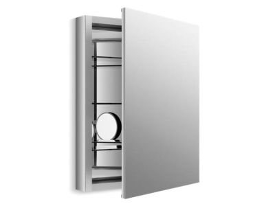 Kohler® 99007-SCF-NA Verdera® Mirrored Cabinet With Adjustable Flip-Out Flat Mirror, 24 in OAW x 30 in OAH, Anodized Aluminum