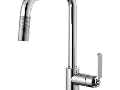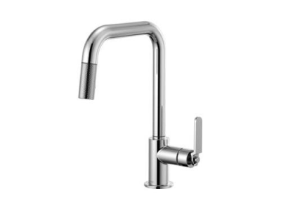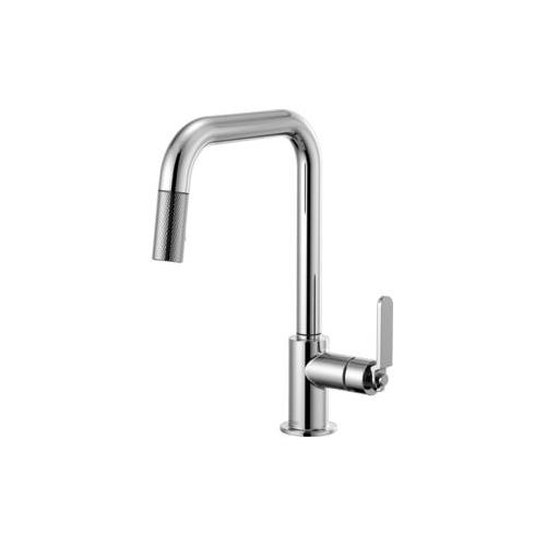 Brizo® Kitchen Faucet, Pull-Down, Litze™ Collection, 1.8 gpm Flow Rate, Square Spout, 9 in Spout Reach, 14 in Spout Height, Industrial Lever Handle, 1 Handles, 1 Faucet Holes, 1-1/4 to 1-1/2 in Faucet Hole, 3/8 in Connection, Compression Connection, Spray Pattern: Stream, Function: Traditional, 2 Spray Functions, 3 in Maximum Deck Thickness, Deck Mounting, Euro-Motion Ceramic Disc Cartridge, Brass, Polished Chrome