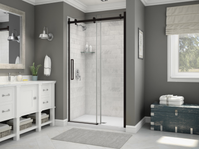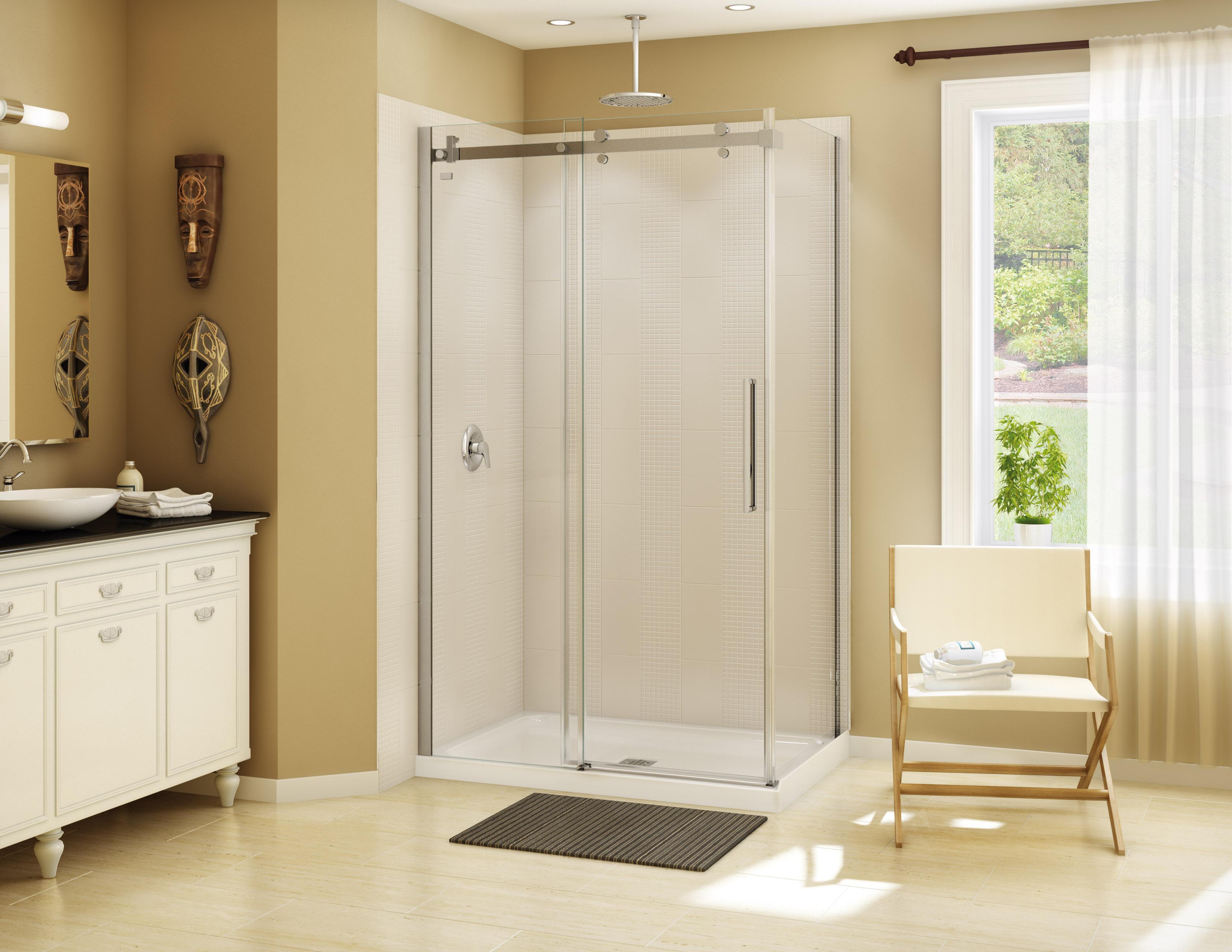 MAAX® Sliding Shower Door, Series: Professional 138996, Halo Collection, 18-3/8 in Opening Width, Clear Glass, 8 mm Glass Thickness, 78-3/4 in Overall Height, 44-1/2 to 47 in Overall Width, Polished Chrome, Import
