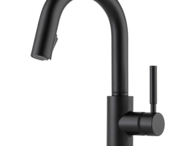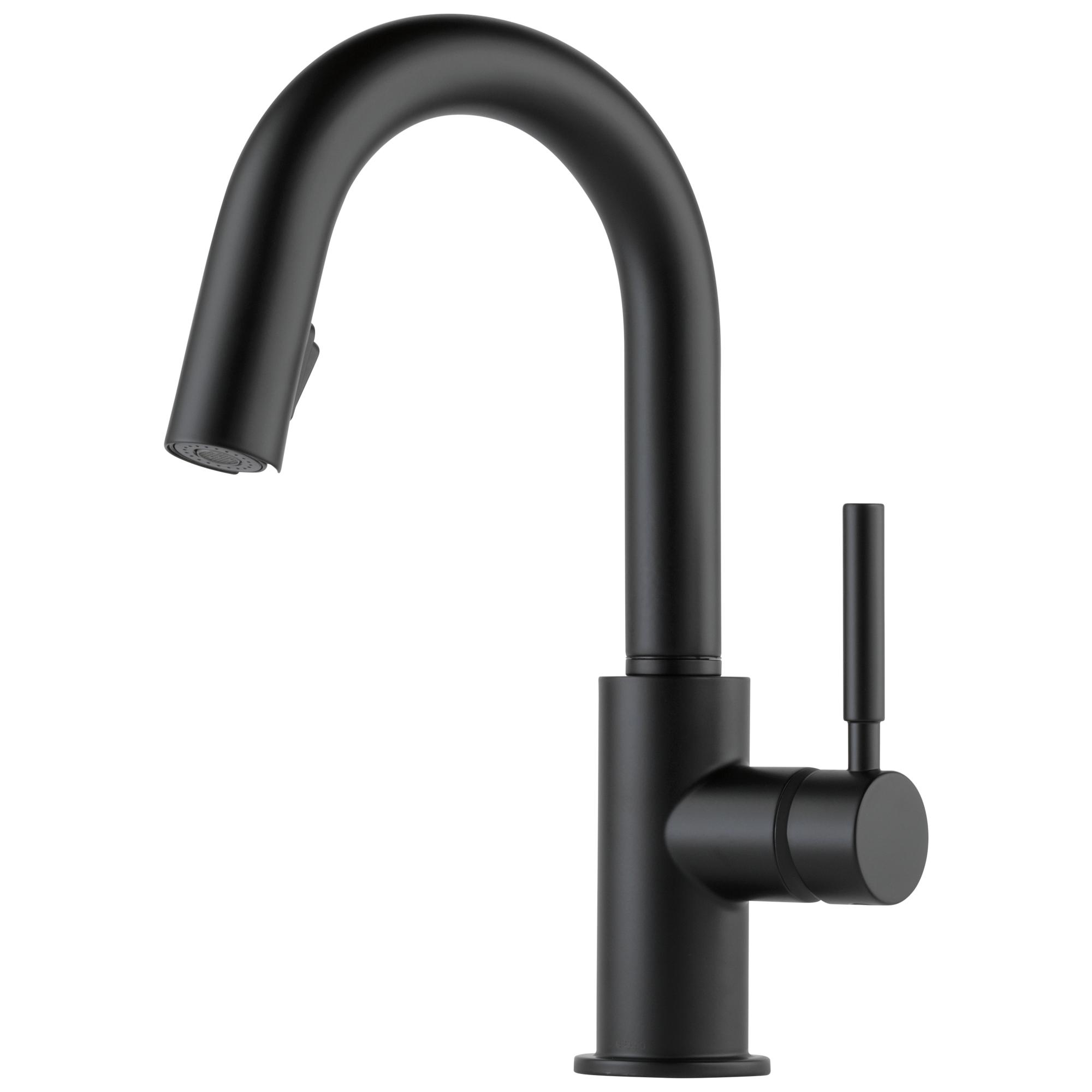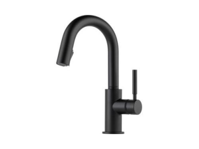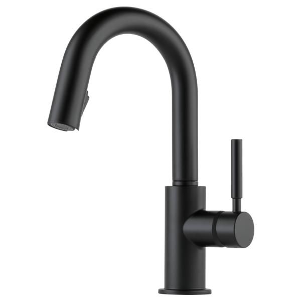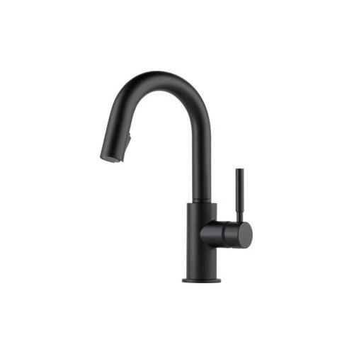 Brizo® Prep Faucet, Pull-Down, Solna® Collection, 1.8 gpm Flow Rate, 9-3/32 in Spout Reach, 15-11/16 in Spout Height, Lever Handle, 1 Handles, 1 Faucet Holes, 1-1/4 to 1-1/2 in Faucet Hole, 3/8 in Connection, Compression Connection, 2-1/2 in Maximum Deck Thickness, Deck Mounting, Euro-Motion DIAMOND™ Seal Valve, Brass, Matte Black, Domestic