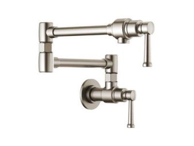 Brizo® Pot Filler Faucet, Artesso®, 4 gpm, Swivel Spout, 19-1/4 in Spout Reach, 5 in Spout Height, Lever Handle, 2 Handles, Side Spray(Y/N): No, 1 Faucet Holes, 1 in Faucet Hole, 1/2 in Connection, IPS Connection, Wall Mounting, Ceramic, Brass, Stainless Steel, Import