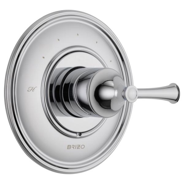 Brizo® Valve Trim, High Flow, Baliza® SENSORI® Collection, 1 Handles, Lever Handle, 7-1/2 in Dia Trim, Thermostatic Ceramic Cartridge, Wall Mounting, For Use With: R66000-WS Model Rough-In Valve Body, Zinc, Polished Chrome